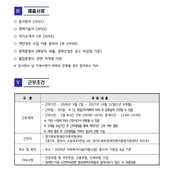 2026년 1차 경기북부장애인가족지원센터 발달지원팀(팀원) 출산휴가·육아휴직 대체인력 채용 공고