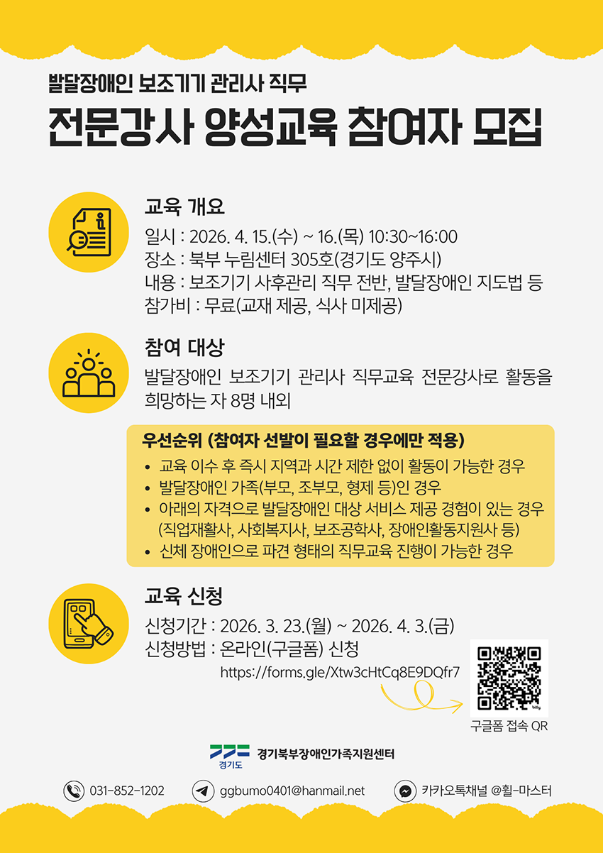 발달장애인 보조기기 관리사 직무 전문강사 양성교육 참여자 모집